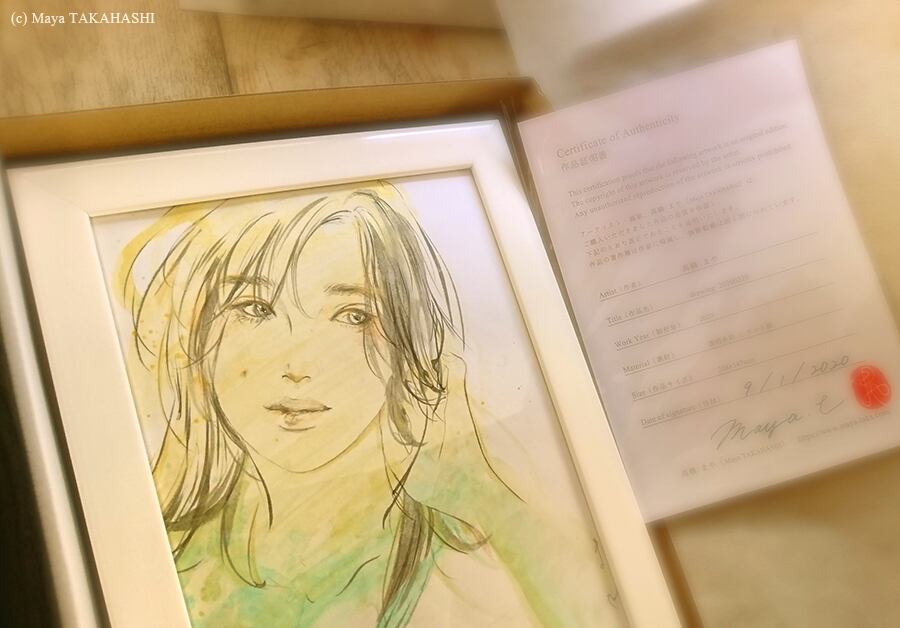 付属品:樹脂製フレーム(壁掛け・スタンド可能)、作品証明書